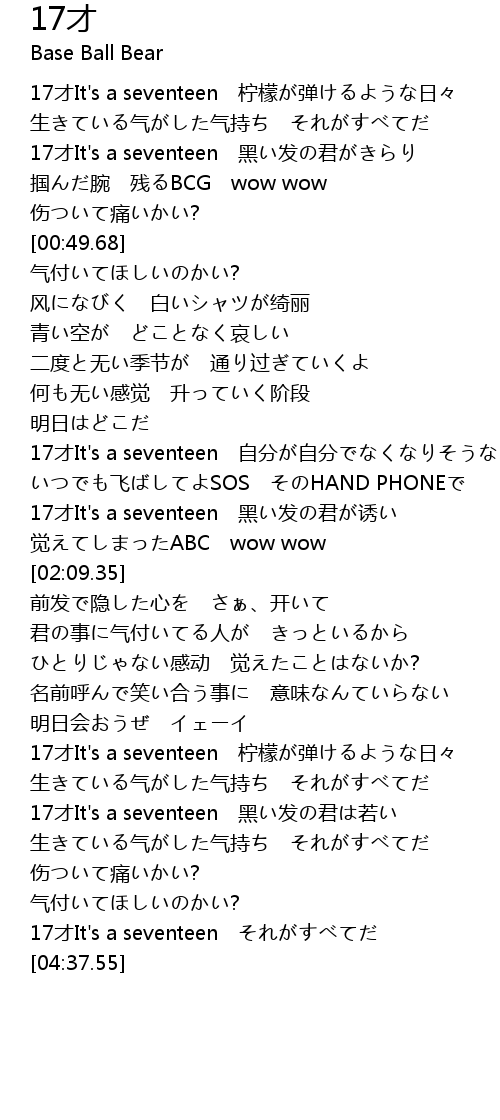 | [03:33.39] | 17才It's a seventeen 黑い发の君は若い |