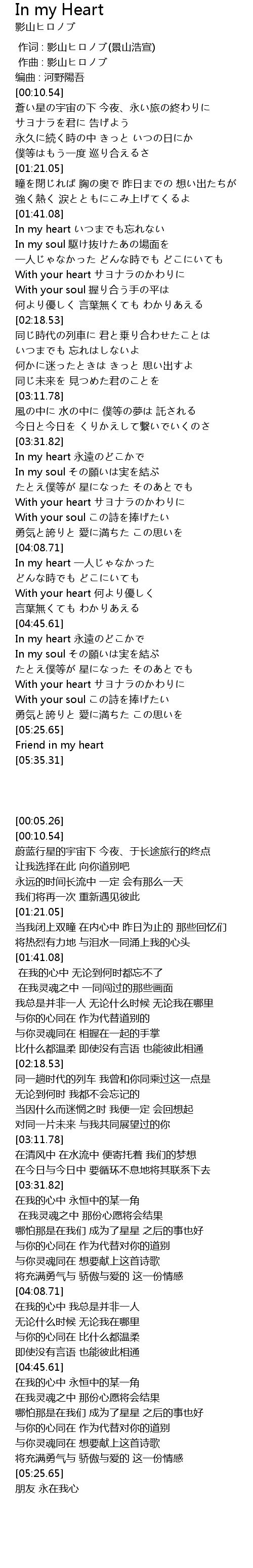 | [04:45.62] | In my heart 永遠のどこかで |