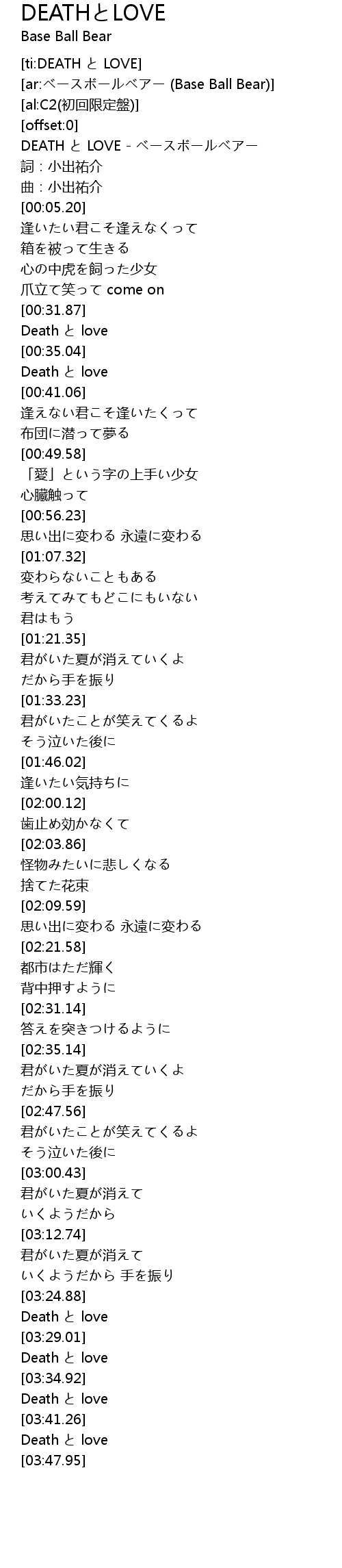 | [00:00.68] | DEATH と LOVE - ベースボールベアー |