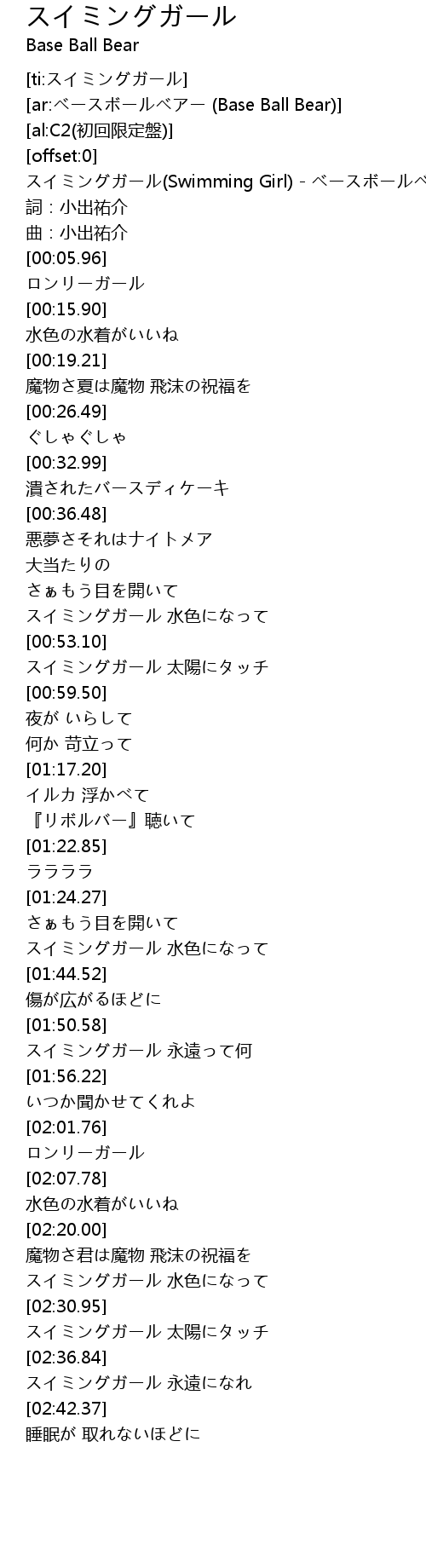 | [00:00.68] | スイミングガール(Swimming Girl) - ベースボールベアー |