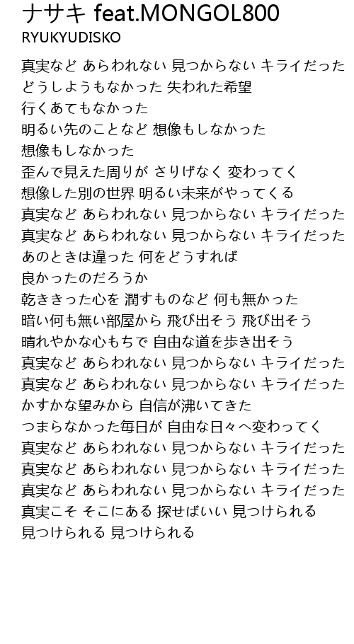 | 歌曲 | ナサキ feat.MONGOL800 |