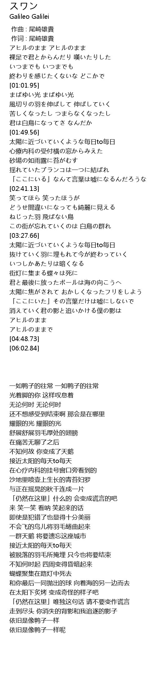 | [01:41.33] | 不知何故 你变成了天鹅 |