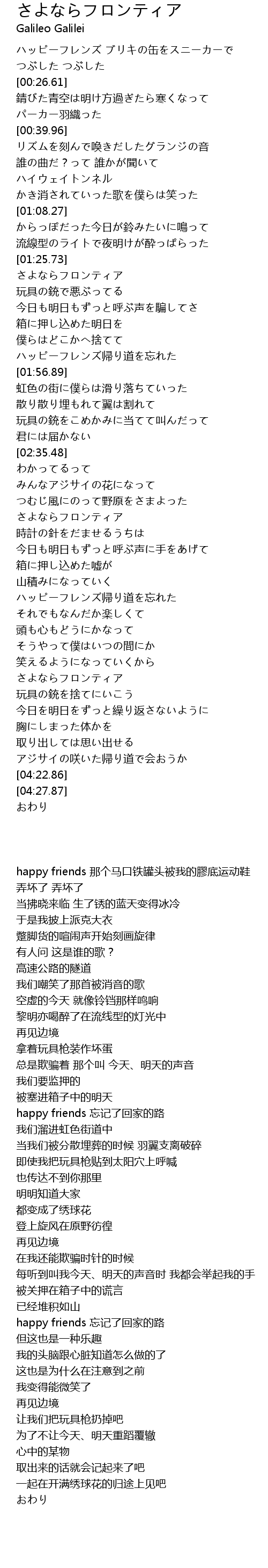 | [01:50.09] | ハッピーフレンズ帰り道を忘れた |
