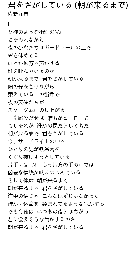 | 朝が来るまで 君をさがしている |