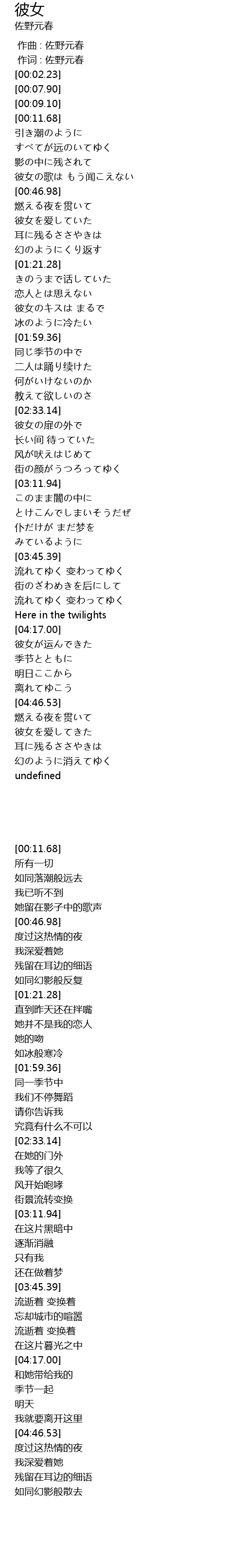 | [00:56.74] | 彼女を爱していた |