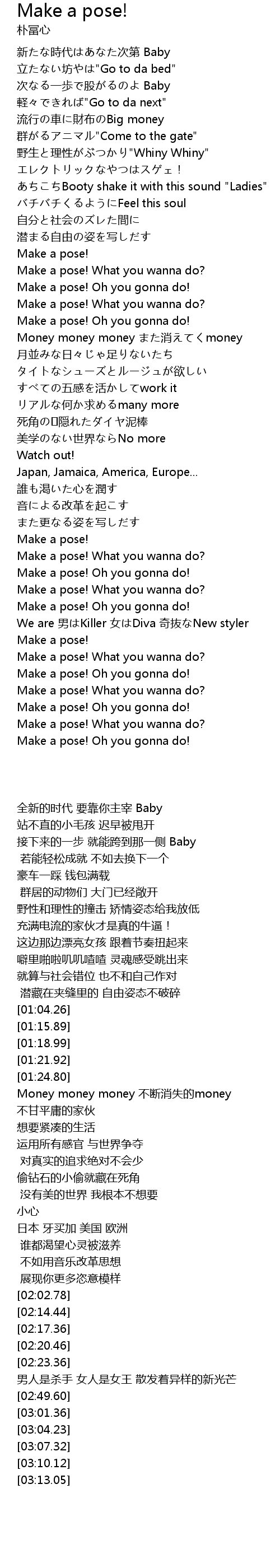 | [03:01.36] | Make a pose! What you wanna do? |