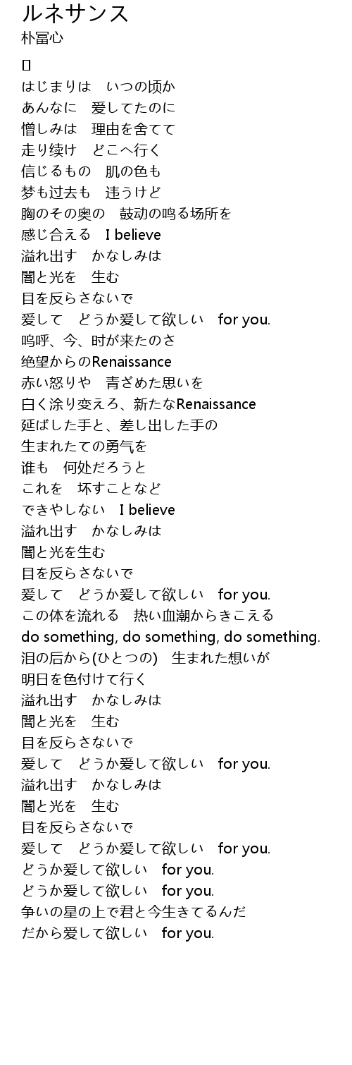 | 泪の后から(ひとつの) 生まれた想いが | |
