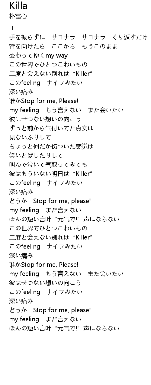 | 歌曲 | Killa |