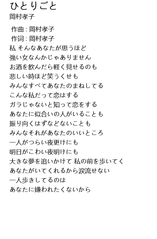 | [00:01.00] | 作词 : 岡村孝子 |