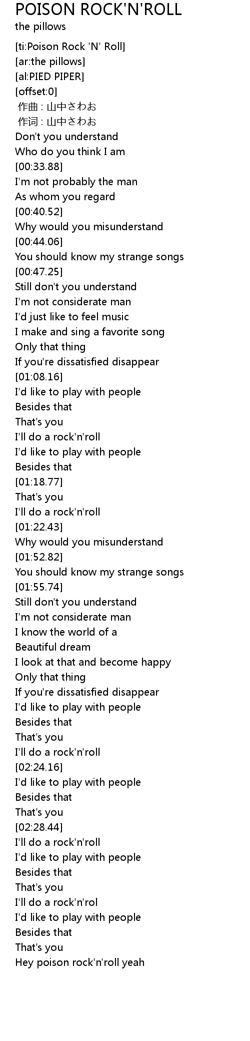 | [02:42.74] | Hey poison rock'n'roll yeah |