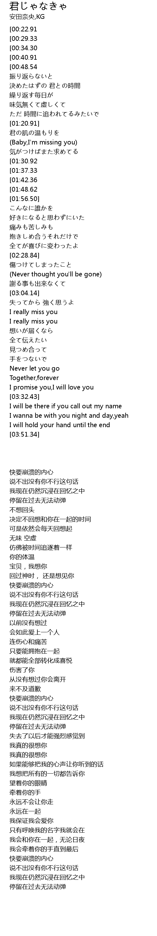 | [01:24.51] | Baby, I' m missing you |