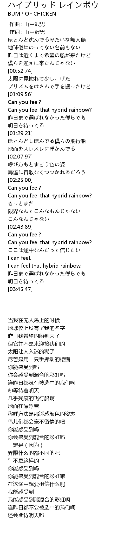 | [03:29.59] | 我能感受到那混合的彩虹啊 |