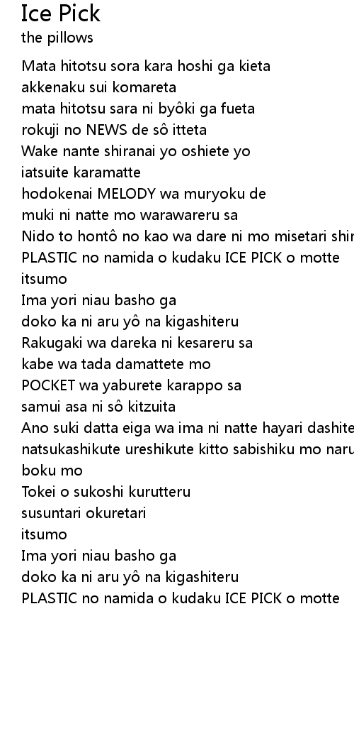 | PLASTIC no namida o kudaku ICE PICK o motte | |