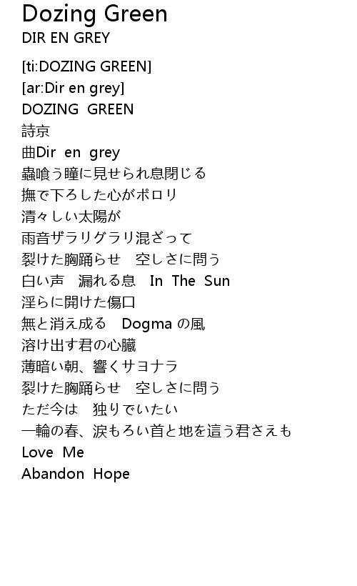 | [00:01.23] | DOZING GREEN |