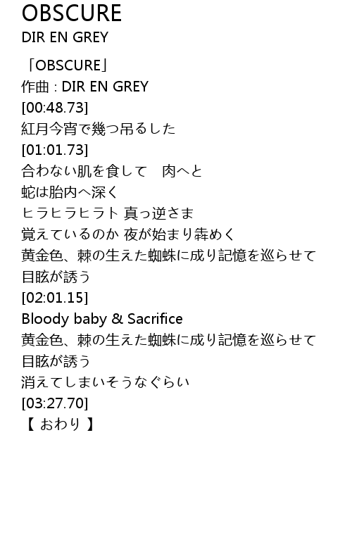 | [00:28.73] | zuò qǔ DIR EN GREY |