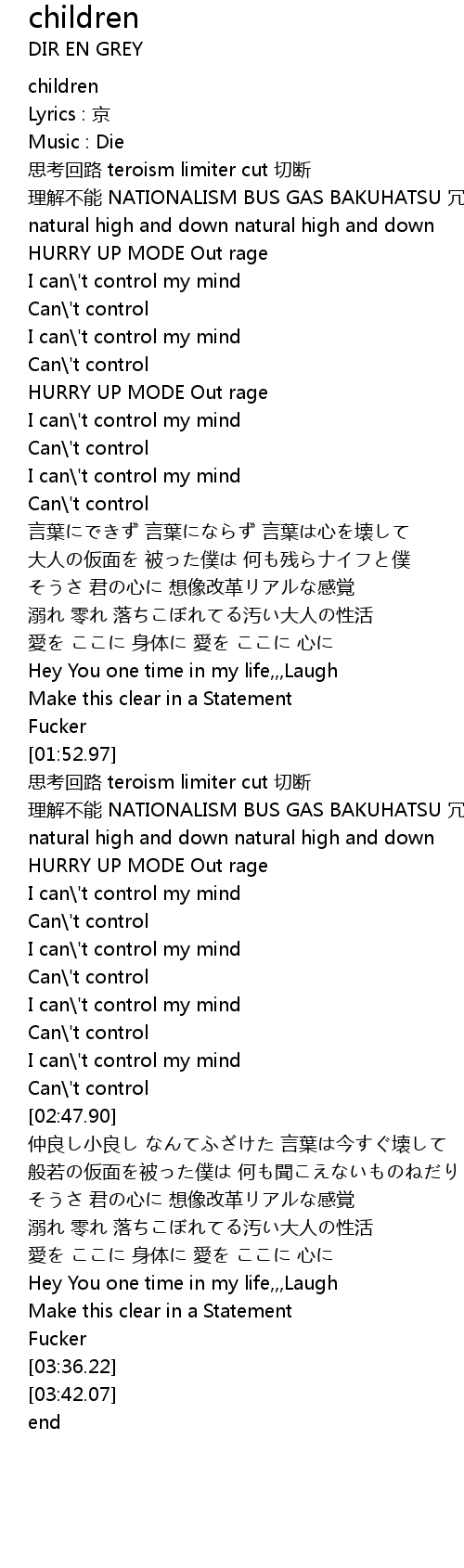 | [00:31.51] | 理解不能 NATIONALISM BUS GAS BAKUHATSU 冗談 |