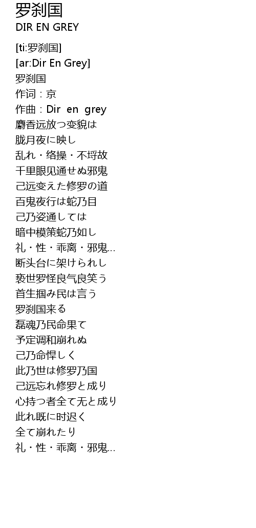 | [00:04.01] | zuò qǔ: Dir en grey |