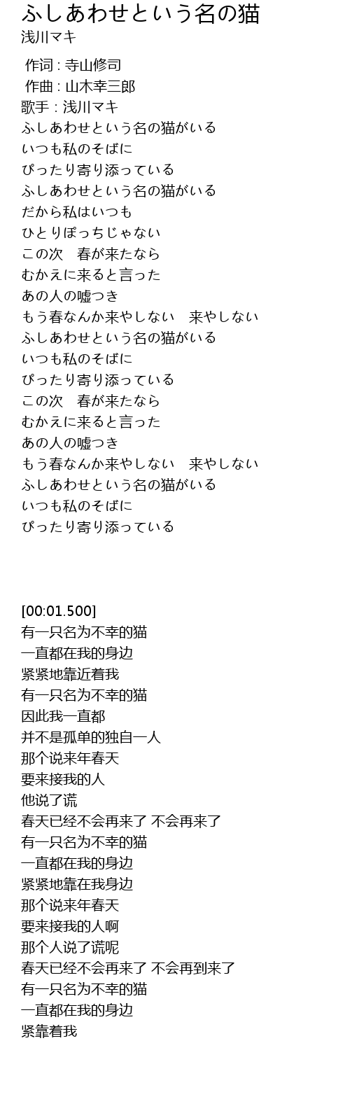 | [01:23.500] | ふしあわせという名の猫がいる |