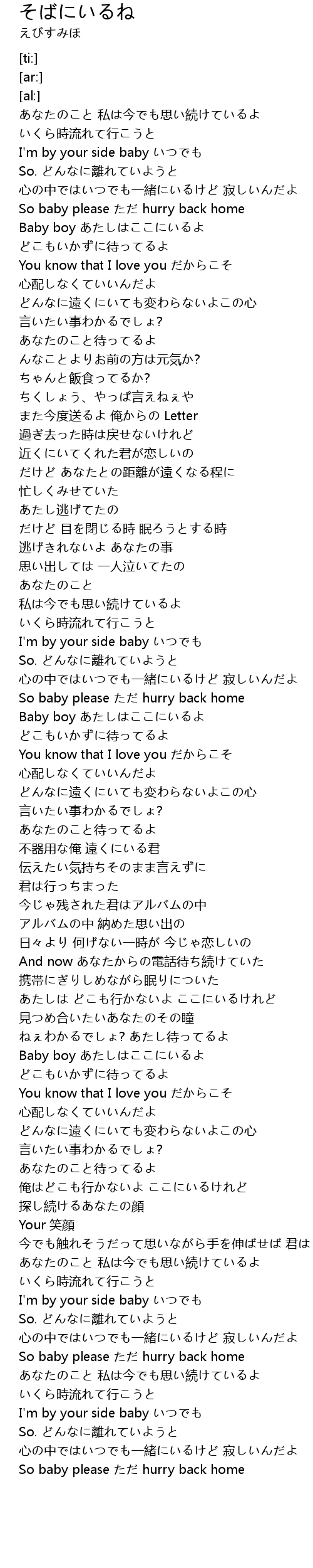 | [02:13.34] | Baby boy あたしはここにいるよ |