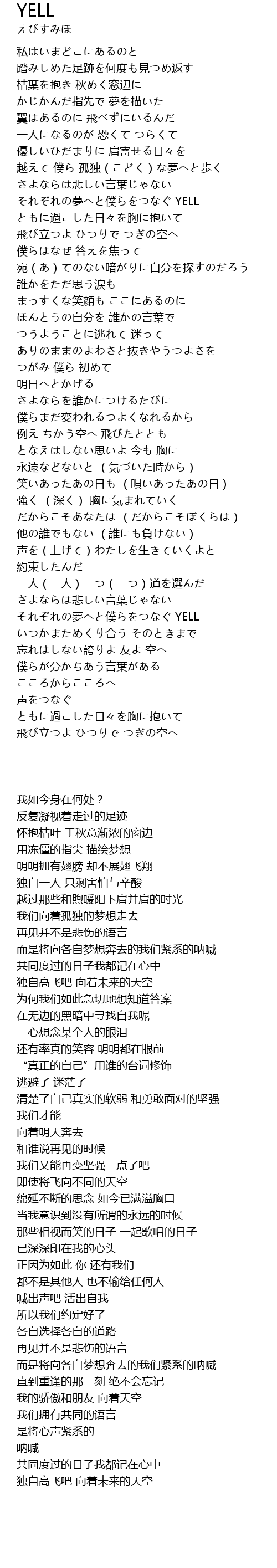 | [04:29.40] | それぞれの夢へと僕らをつなぐ YELL |