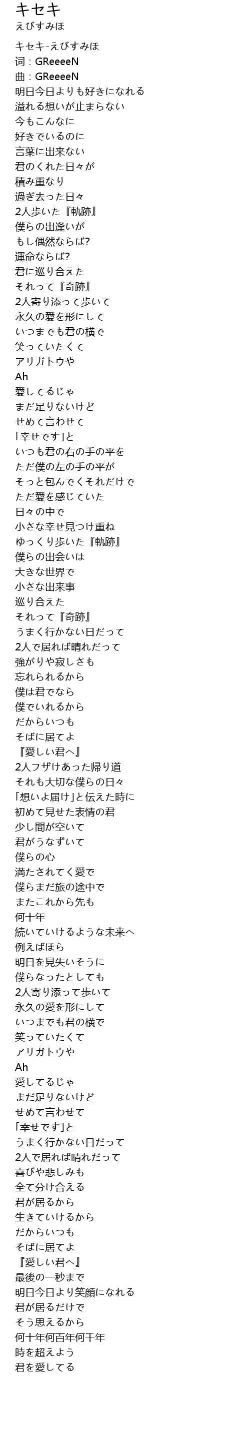 | [00:00.215] | キセキ-えびすみほ |