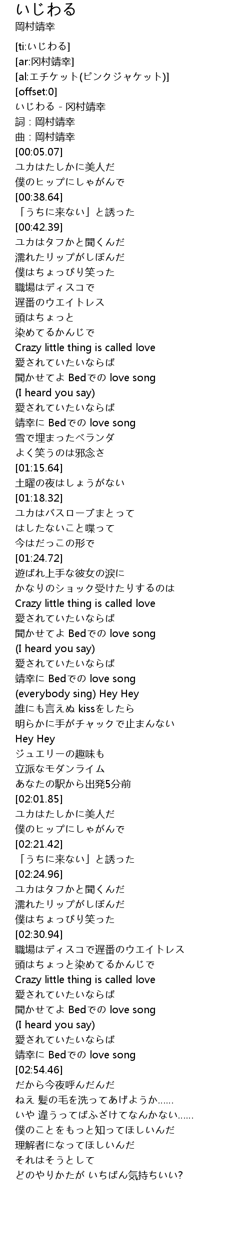 | [00:00.64] | いじわる - 冈村靖幸 |