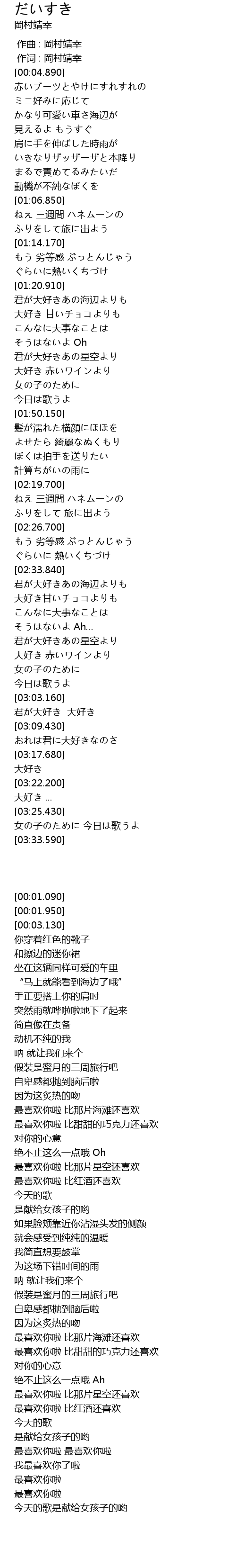 | [02:35.010] | 最喜欢你啦 比那片海滩还喜欢 |