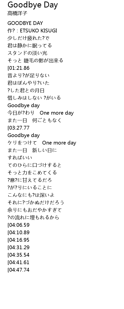 | [03:35.88][04:31.29] | Goodbye day |