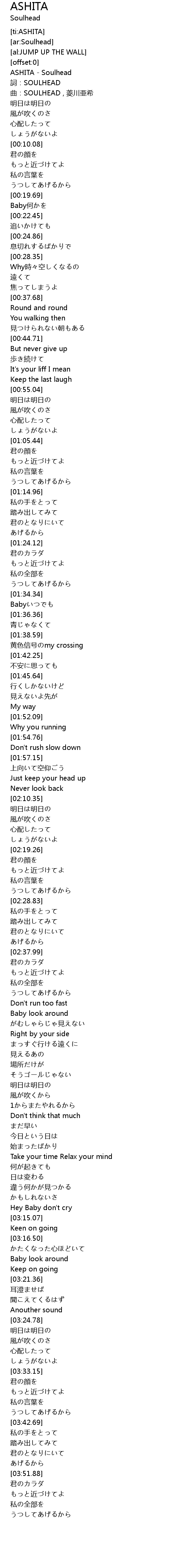 | [00:01.11] | 曲:SOULHEAD , 菱川亜希 |