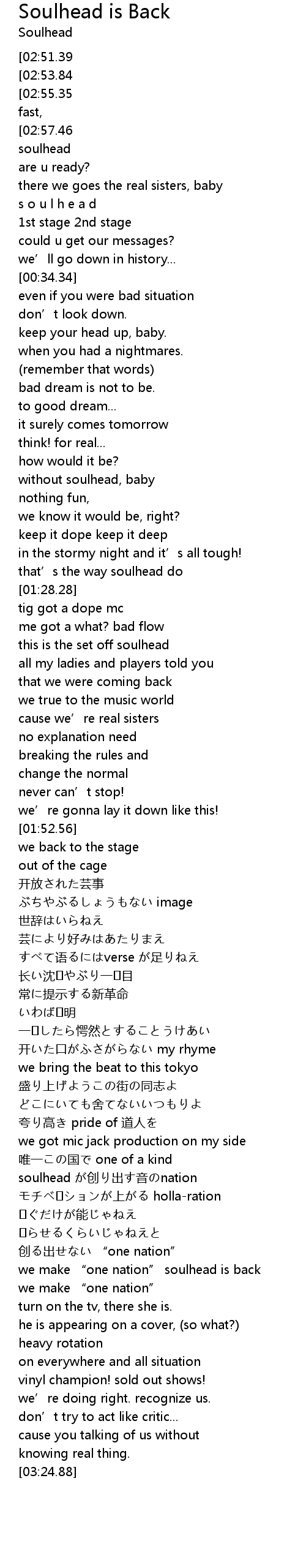 | [02:46.04] | we make " one nation" soulhead is back |