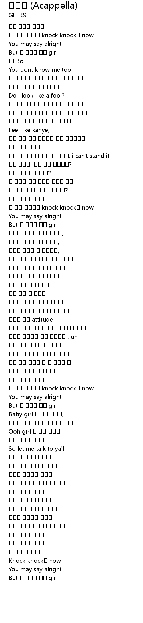| [00:15.60] | But 나 아닌걸 알아 girl |