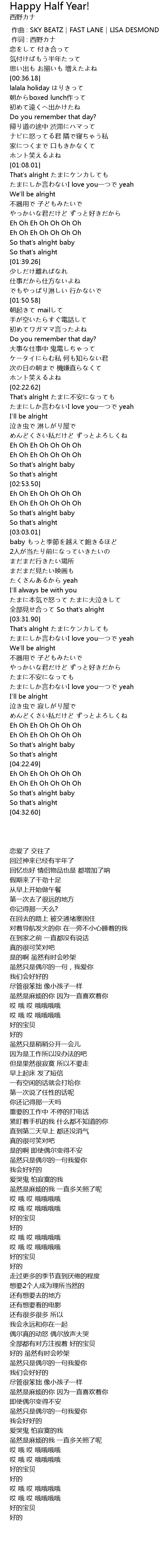 | 歌曲 | Happy Half Year! |