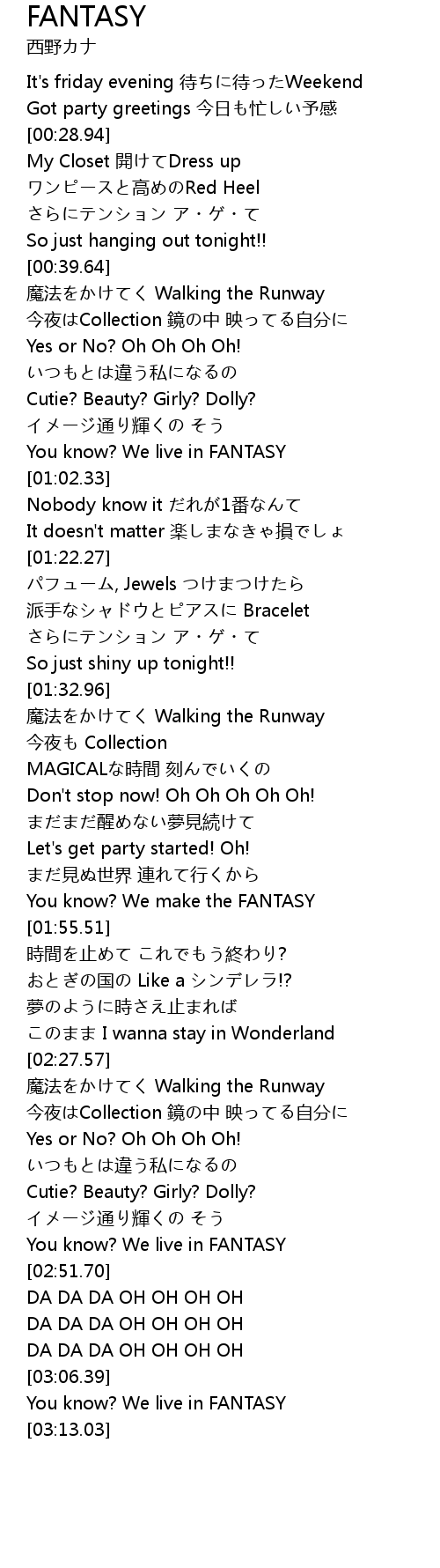 | [01:22.48] | パフューム, Jewels つけまつけたら |
