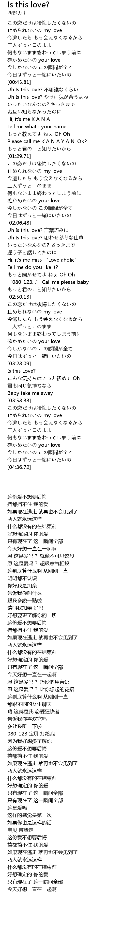 | [01:02.67] | Uh Is this love? qi he |