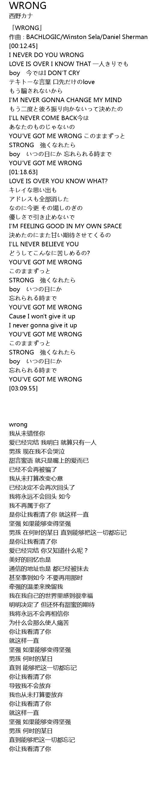 | [02:05.69] | YOU'VE GOT ME WRONG |