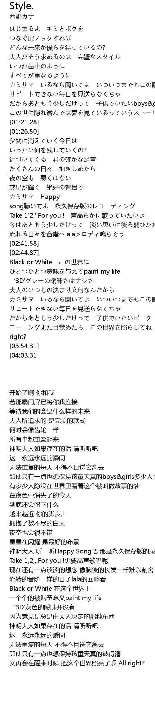 | [00:26.97] | 大人がそう求めるのは 完璧なスタイル |