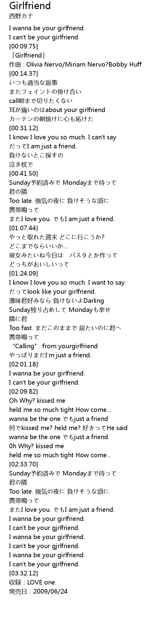 | [03:10.93] | I can' t be your gjrlfriend. |