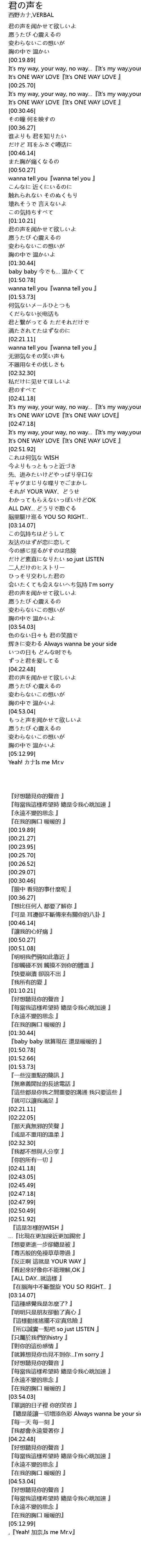 | [02:45.49] | It's ONE WAY LOVE『It's ONE WAY LOVE』 |