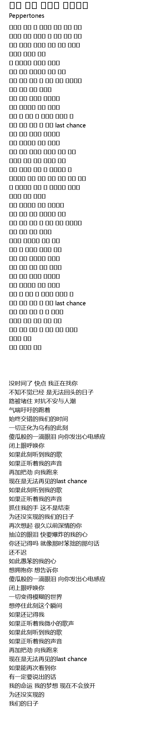 | [02:53.81] | 이제 다시 만날 수 없는 last chance |