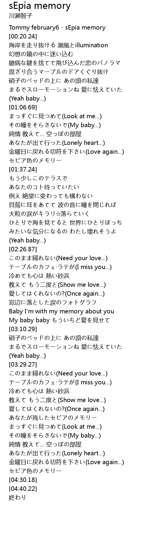 | [00:00.00] | Tommy february6 - sEpia memory |