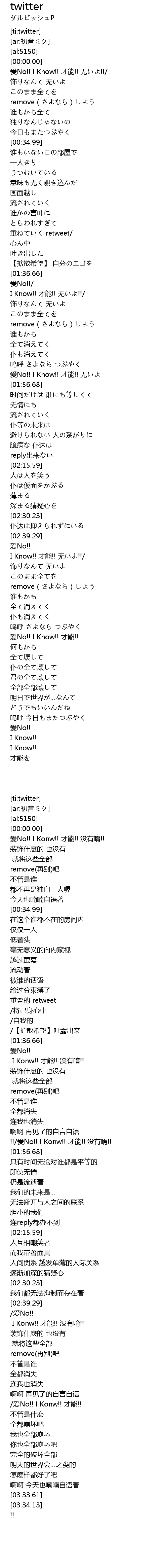 | [03:30.89] | 呜呼 今日もまたつぶやく |