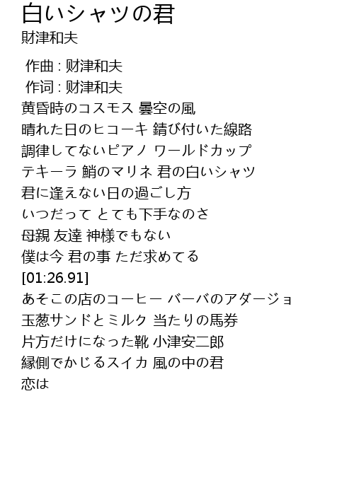 | [00:01.00] | 作词 : 财津和夫 |