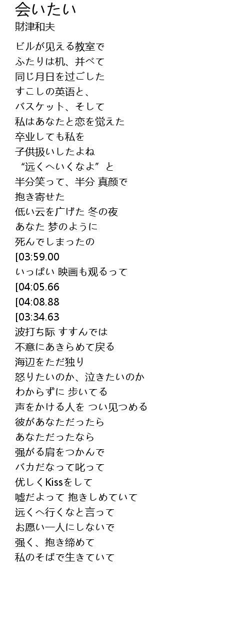 | [01:55.71][03:34.63][04:15.92] | 会いたい… |
