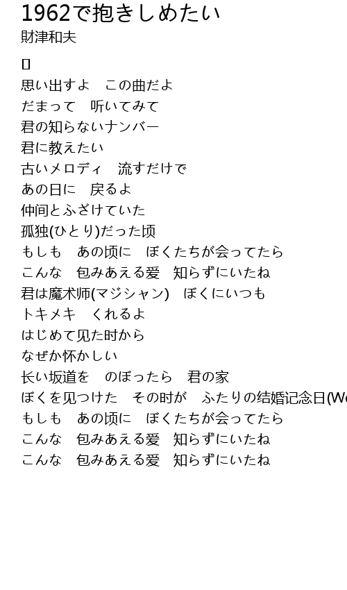 | 歌曲 | 1962で抱きしめたい |