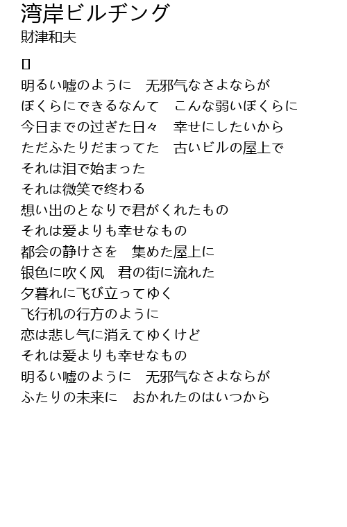 | 歌曲 | 湾岸ビルヂング |