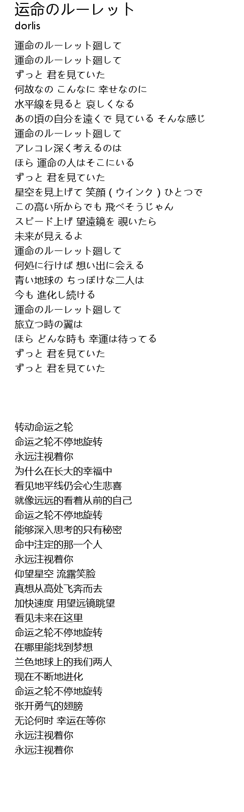 | [03:02.960] | 運命のルーレット廻して |
