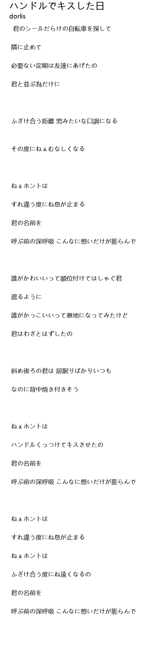 | 呼ぶ前の深呼吸 こんなに想いだけが膨らんで |