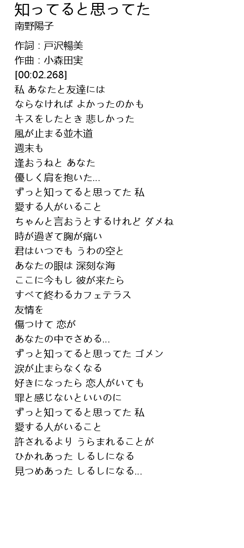 | [02:24.571] | ずっと知ってると思ってた ゴメン |