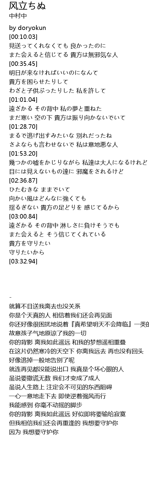 | [03:01.01] | 遠ざかる その背中 淋しさに負けそうでも |