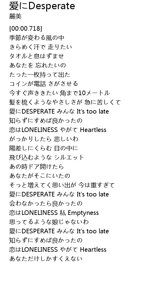 | [02:55.138] | 愛にDESPERATE みんな It's too late |